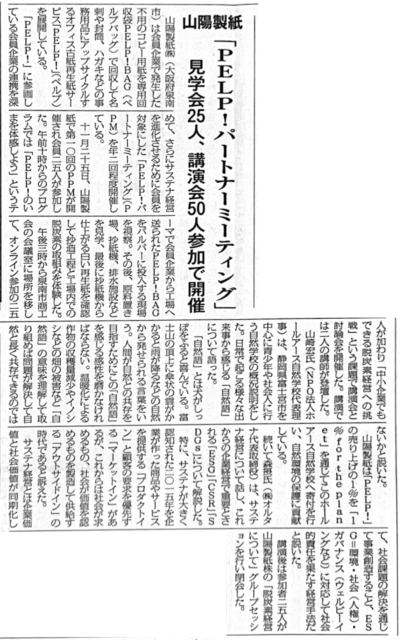 令和7年12月8日発行の紙之新聞に、山陽製紙が開催したPPM(ペルプパートナーミーティング)の様子が、紹介されました。