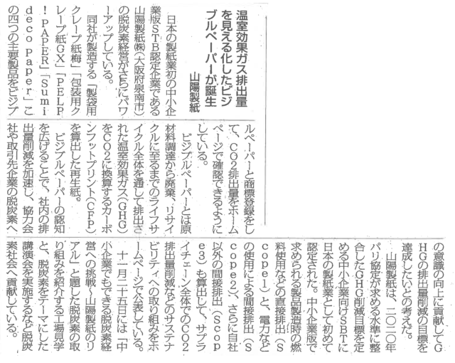 温室効果ガス排出量を“見える化”した「ビジブルペーパー」誕生 日本の製紙業初の中小企業版「SBT」認定企業の脱炭素経営への挑戦