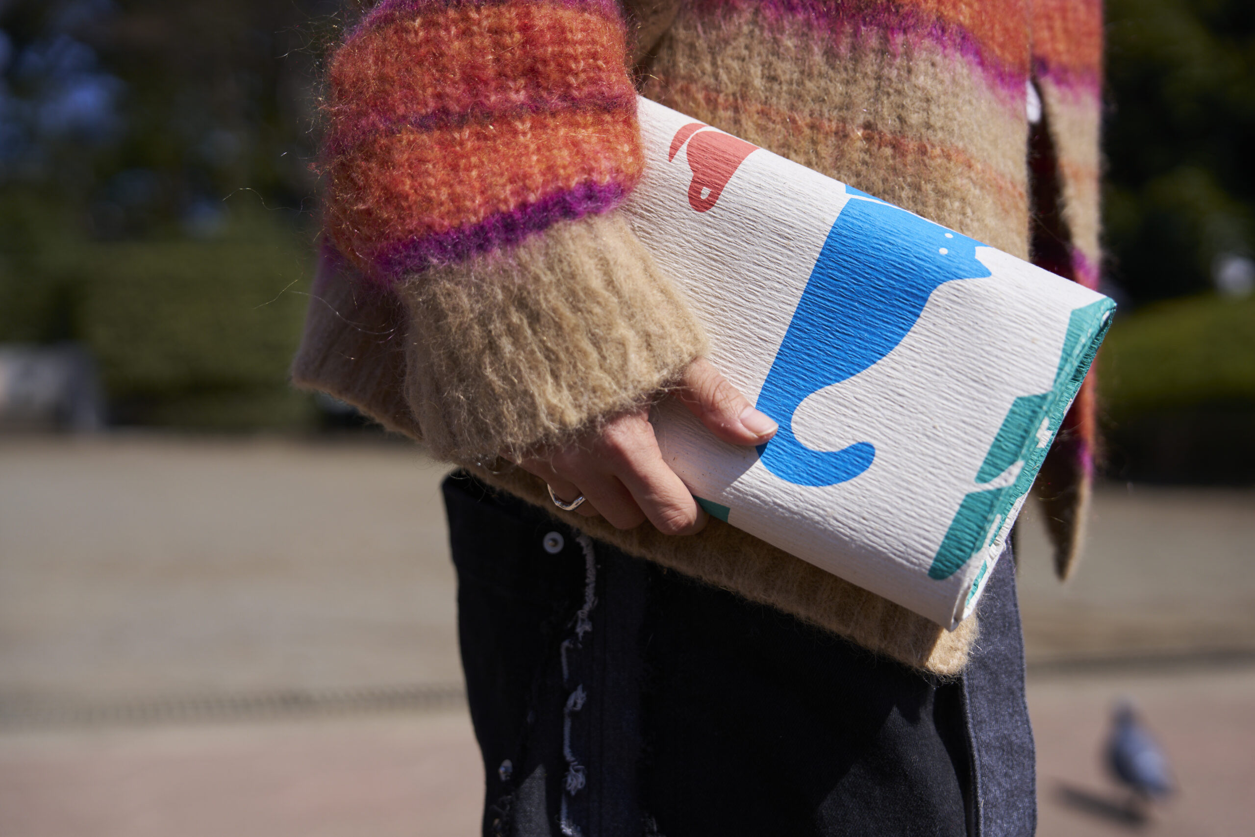 - "本だった紙"の新たな活用方法を考えていた際、製造元の山陽製紙株式会社が開発した紙素材のピクニックラグを使う機会があり、「これは本だった紙でも作れるのではないか」と思ったのが開発のきっかけです。